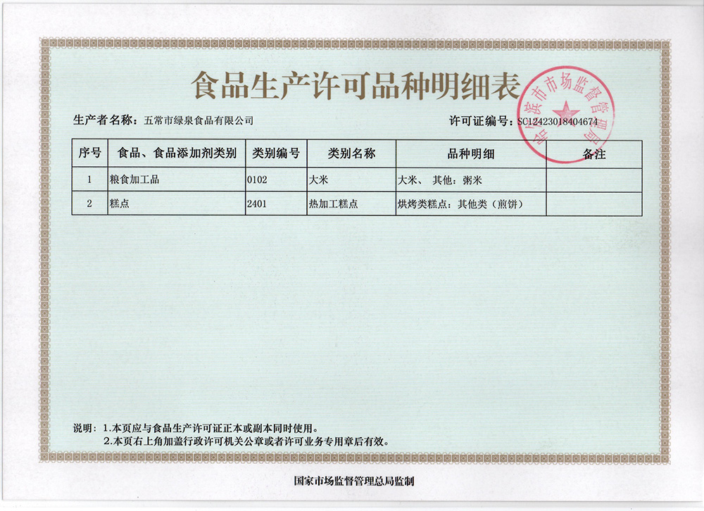 食品生產許可品種明細表